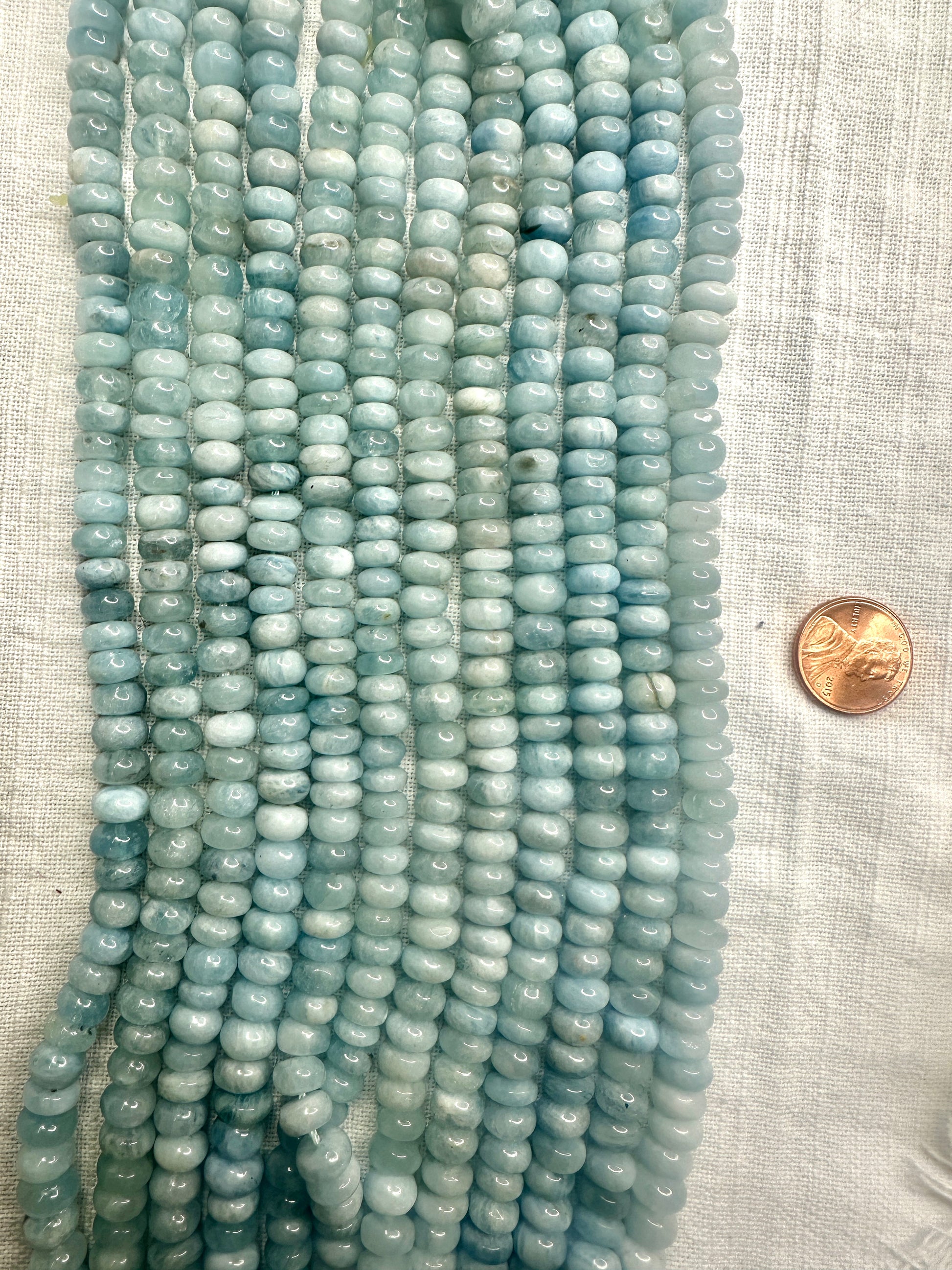 aquamarine 5mmx8.5mm rondelle 16"strand