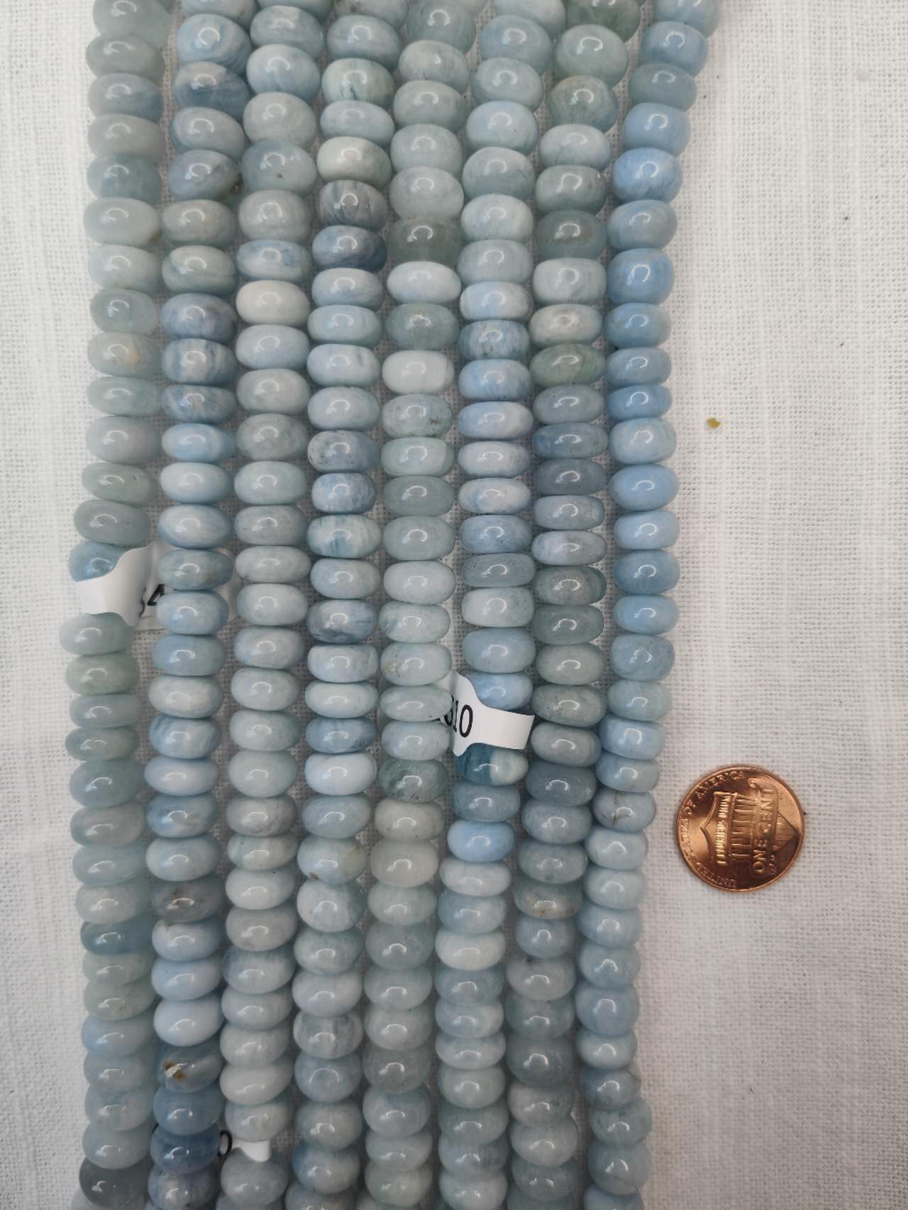 aquamarine 6mmx10mm smooth rondelle 16"strand