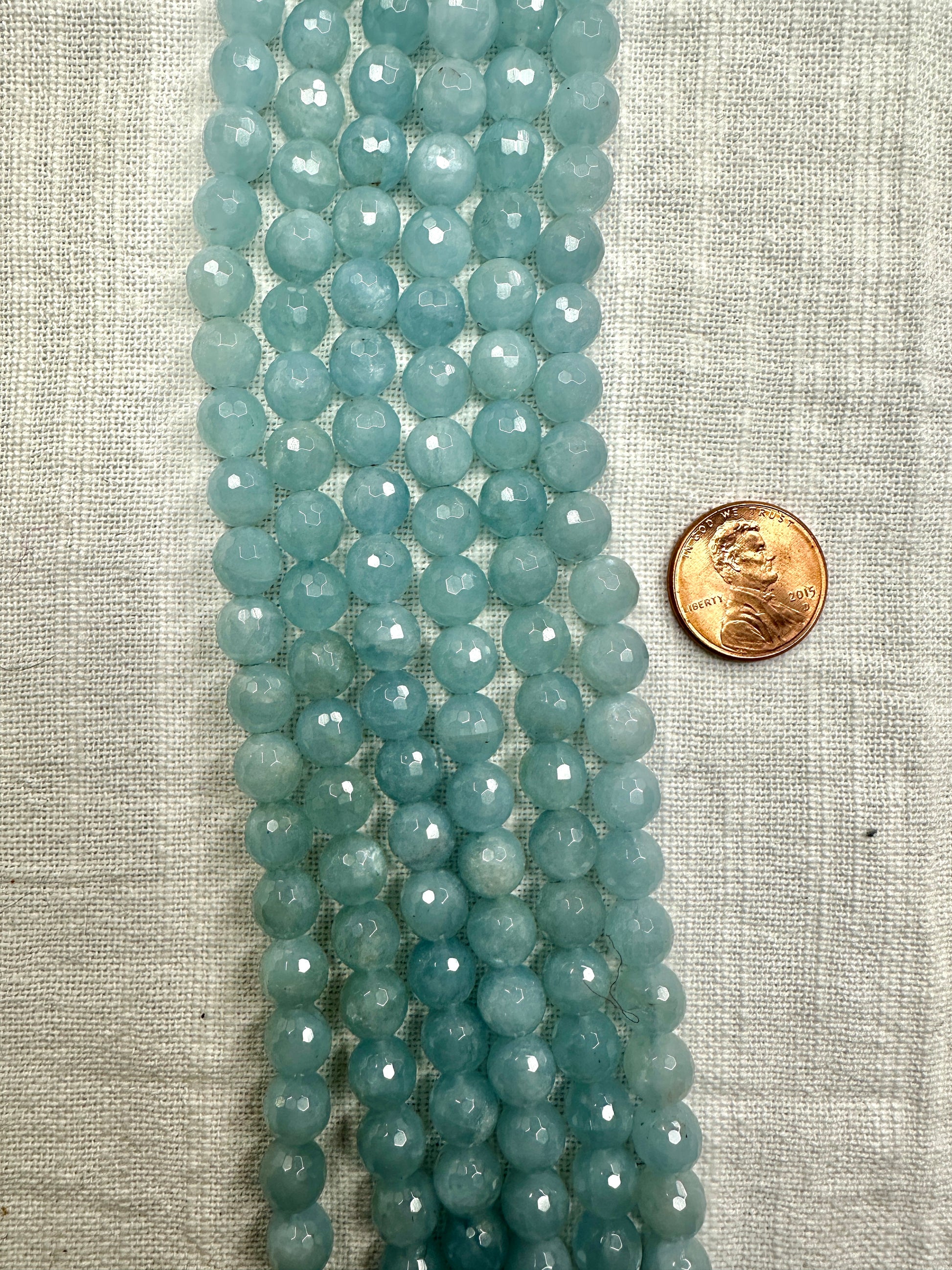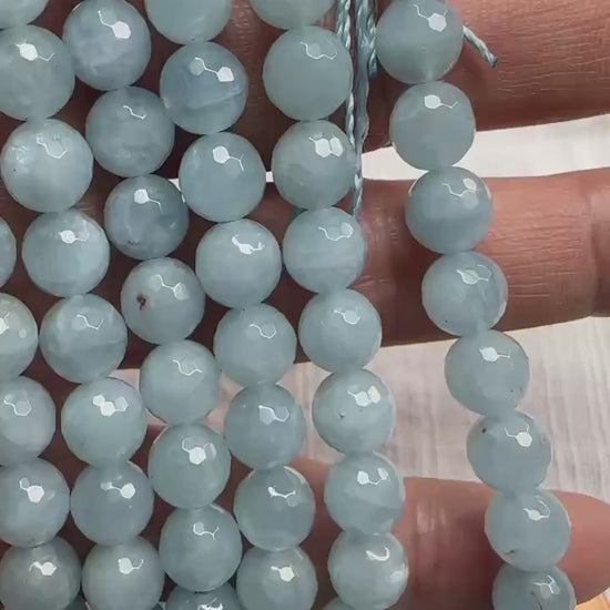 aquamarine faceted 8mm round beads AA grade 16"strand
