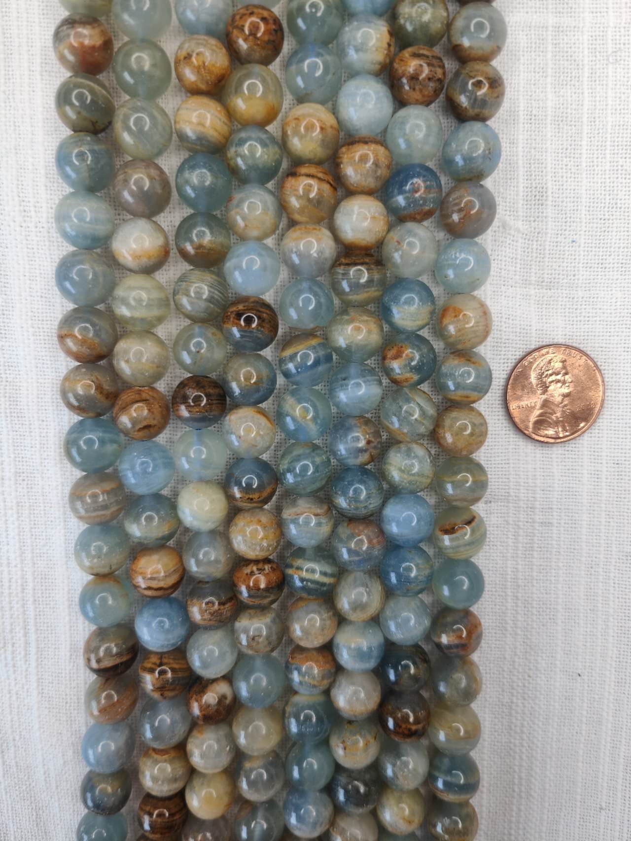 Argentina Lemurian Aquatine Calcite 10mm round beads 15.5"strand